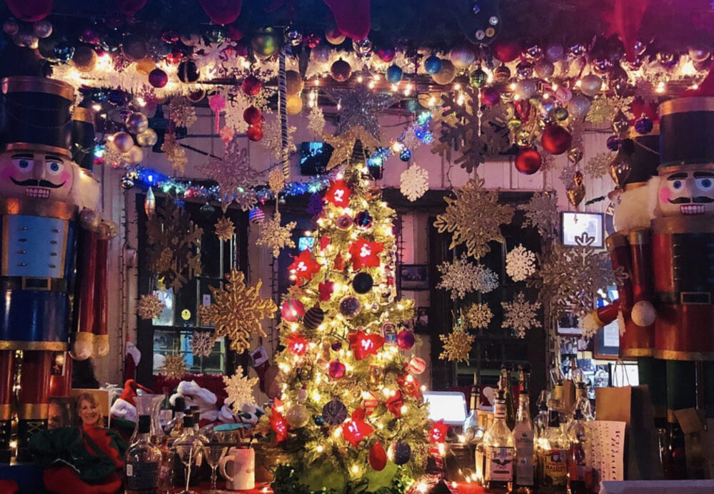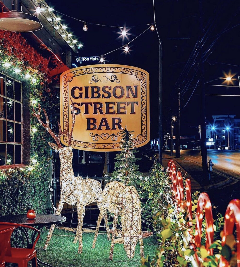 You can’t miss Gibson Street Bar’s Christmas display: It starts at the front door and extends all the way to the parking lot, all December long.