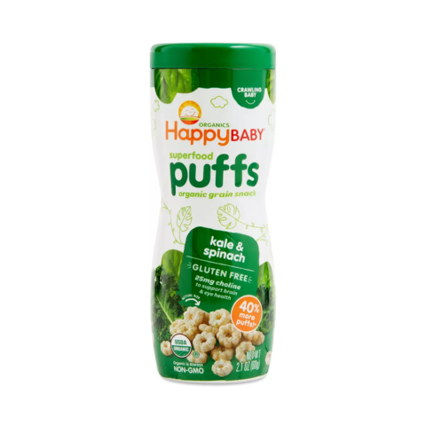 1. Greens Happy Puffs – Dusted with spinach, collard greens, and kale. The puffs melt in Baby’s mouth and encourage self-feeding!