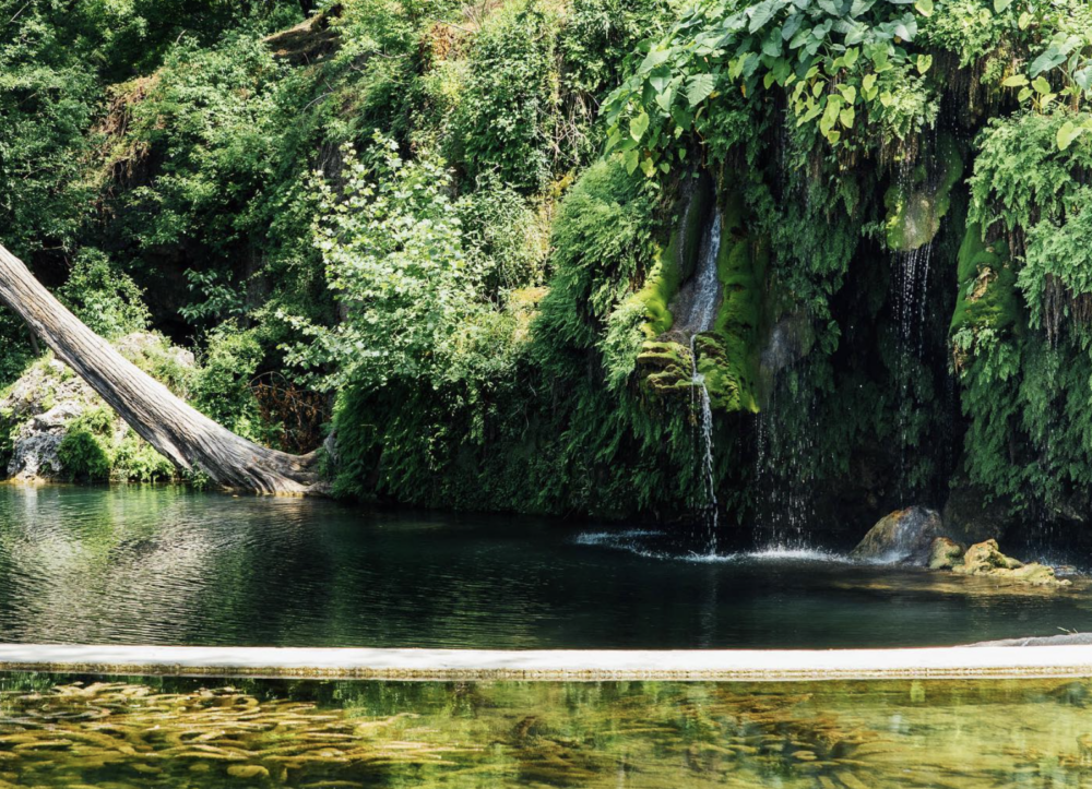 Krause Springs is a camping and swimming site located in Spicewood, Texas about 30 miles west of Austin. There are 32 springs throughout the 115-acre property along with a manmade pool and natural pool that flows into Lake Travis. Food and drinks are allowed, while glass and pets are prohibited. It costs $10 to enter.