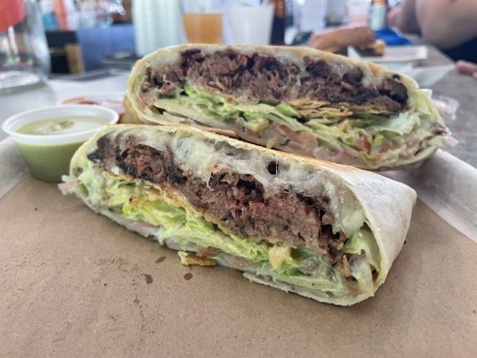 South Austin’s car-dealership-turned-playground-for-grownups, Bouldin Acres, is home to the CM Smokehouse food truck. CM specializes in smoked meats, but they’ve gained recent notoriety for an off-menu ode to Taco Bell’s Crunch Wrap Supreme. CM’s version of the drive-thru treat is loaded with smokey chopped brisket, and contains other high-quality ingredients down to the tortilla.