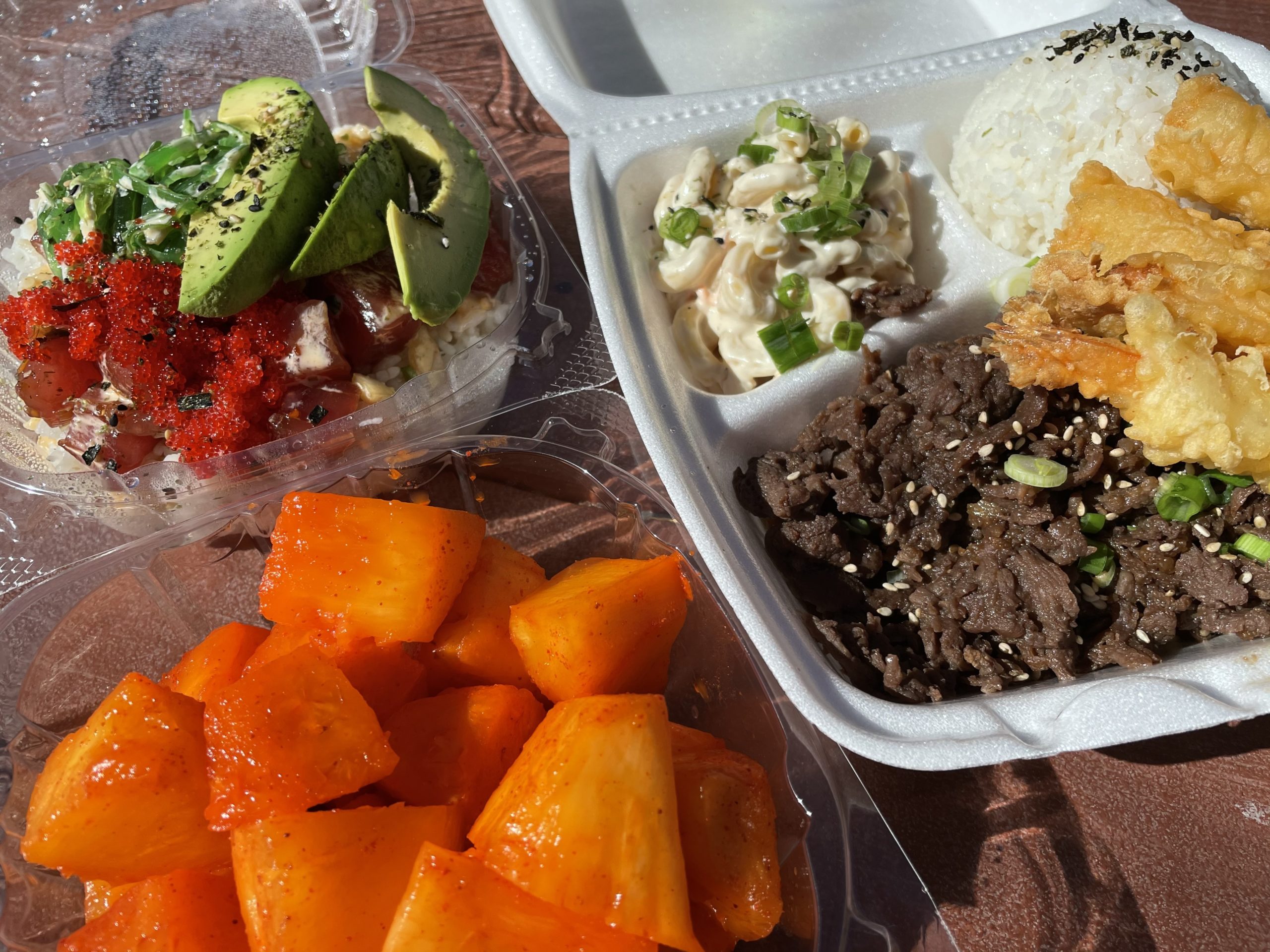 The Beef Bulgogi is both sweet and savory, and served with white rice and a choice of side. I recommend the Li Hing Pineapples for the side order—they’re basically chopped pineapple dusted in chili powder, and they compliment the bulgogi well. The tuna poke took a back seat to the hot bulgogi, but since it is served cold, I just threw it in the fridge and had it for dinner that evening. Two meals in one stop. I’ll be back for the Loco Moco and to try the rest of the dishes I usually only see on vacation.