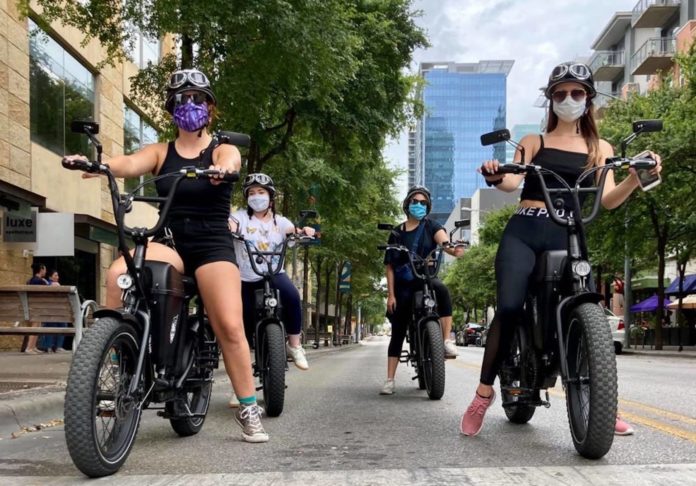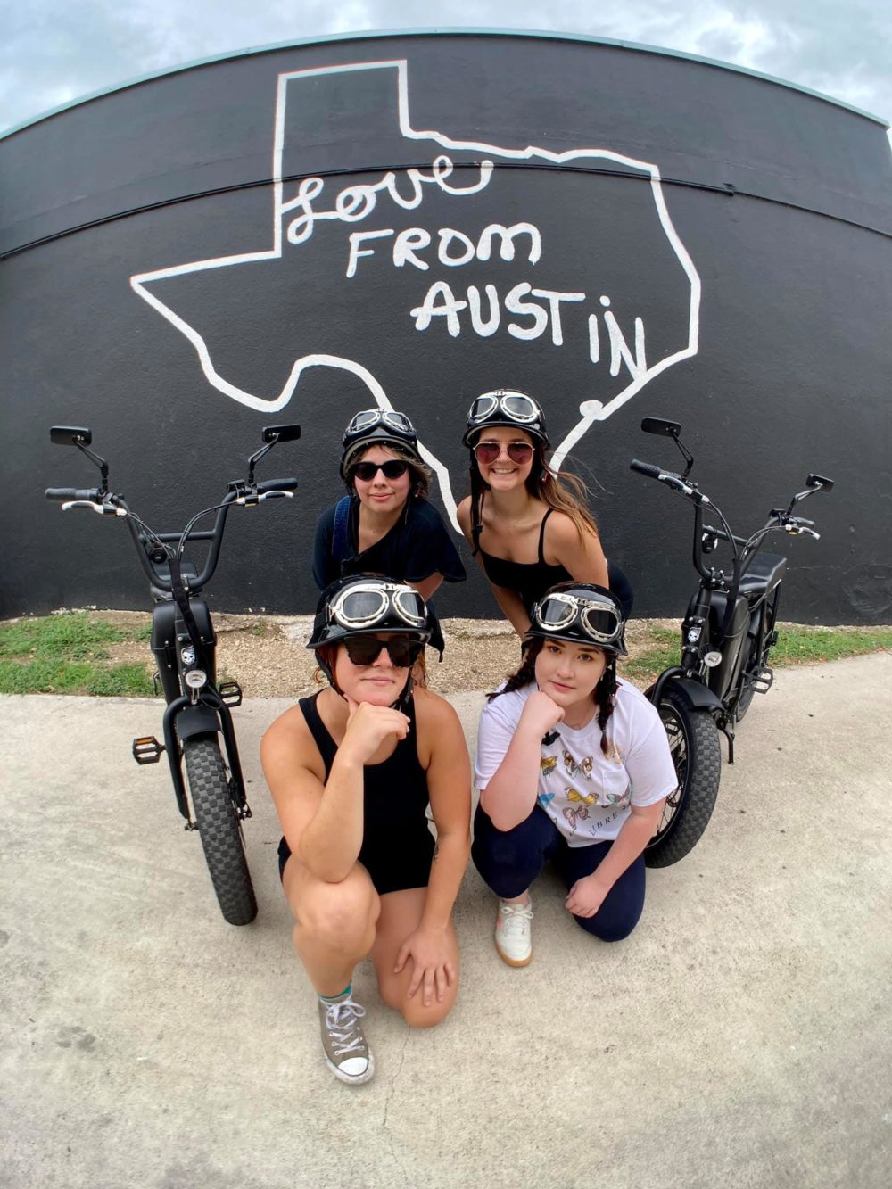 Your Biker Gang is a guided tour around Austin on electric minibikes. Now, I haven’t ridden a bike since I was probably about 12 years old, and never in my life have I been on an electric one so I was super intimidated. I’ve also lived in Austin for 25 years, so going on a guided tour of the city seemed like it could be a tad bit lame. But I went for it anyway. I also made three of my most uncoordinated friends come along—if I failed, I wasn’t going to fail alone.
