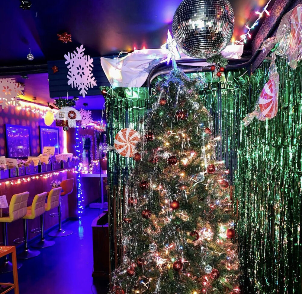 The vegan cafe known as Sunny’s Backyard brought out the disco ball and the tinsel for its “groovy Christmas.” Sip cocktails and enjoy the large outdoor space with vegan pub fare.