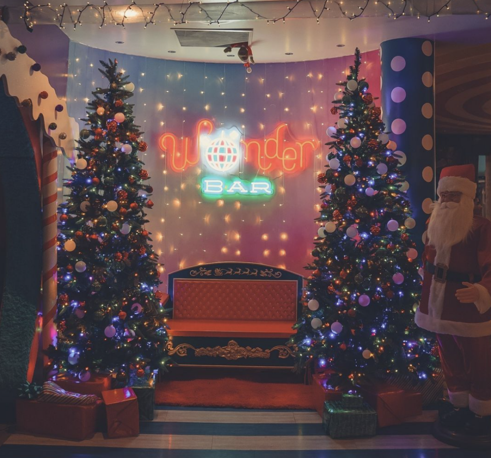 Wonder Bar at the Domain specializes in Instagram-worthy installations, and the halls are truly decked for Christmas. Go here if you need a colorful photo for the grid.