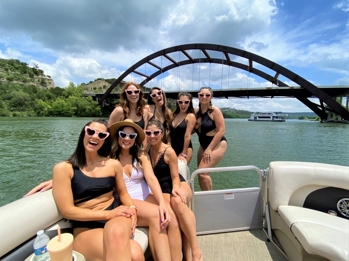 Lake Party: Rent a party barge on Lake Travis or Lake Austin. Pack swimsuits, floaties, drinks, and playlists. Lake Travis is about 45 minutes from the city (definitely recommend booking a FETTI if you rent a boat on that lake). For lake rentals we love Pink Boat Austin or Getmyboat.