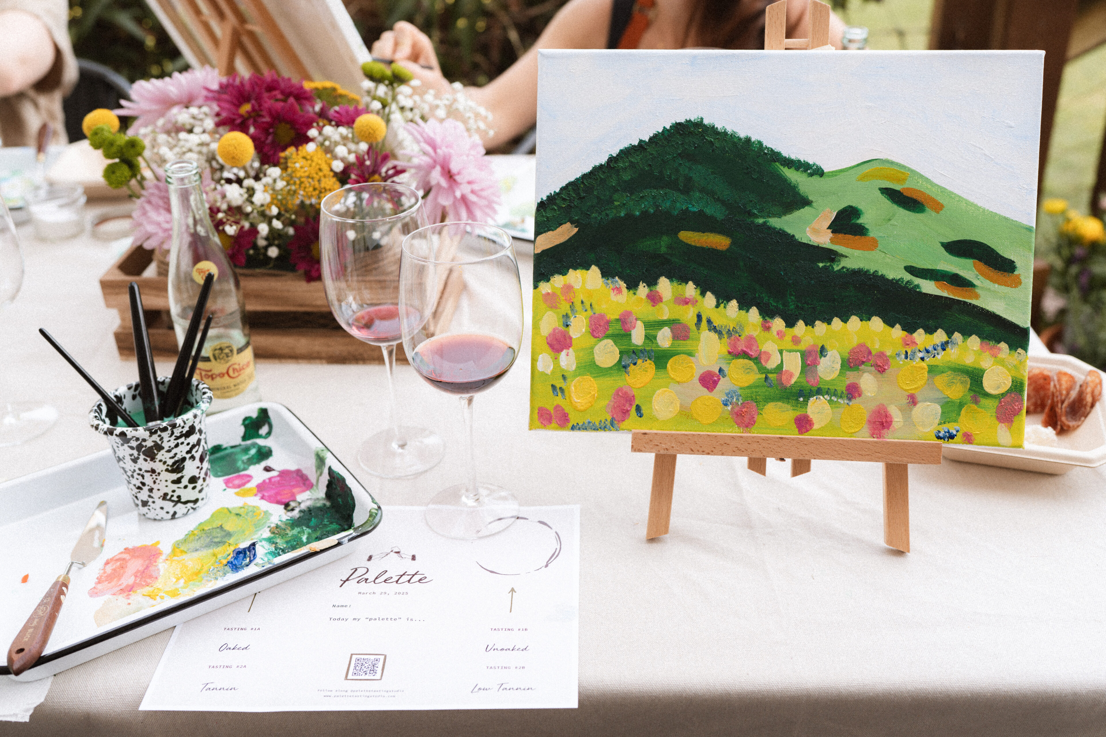 Another fun class we’ve taken recently is from Palette. They offer painting classes paired with wine!