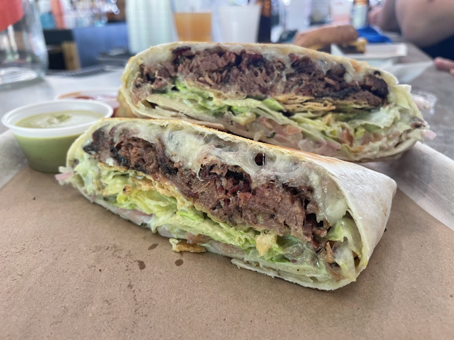 South Austin’s car-dealership-turned-playground-for-grownups, Bouldin Acres, is home to the CM Smokehouse food truck. CM specializes in smoked meats, but they’ve gained recent notoriety for an off-menu ode to Taco Bell’s Crunch Wrap Supreme. CM’s version of the drive-thru treat is loaded with smokey chopped brisket, and contains other high-quality ingredients down to the tortilla.