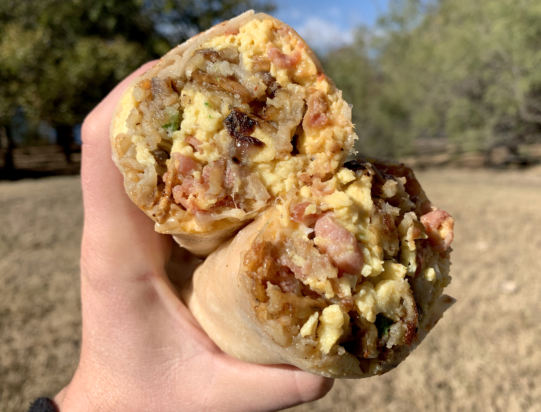 I decided to go for a breakfast burrito, mostly because I procrastinated until the morning of this review’s deadline to visit the truck. Ordering online is easy, and they allow you to make pretty much any modification to your burrito you’d like, including a “cut it in half” option which is gloriously pictured below. Incidentally, it doesn’t just give you a great shot of the burrito’s interior, it also makes it easier to eat.